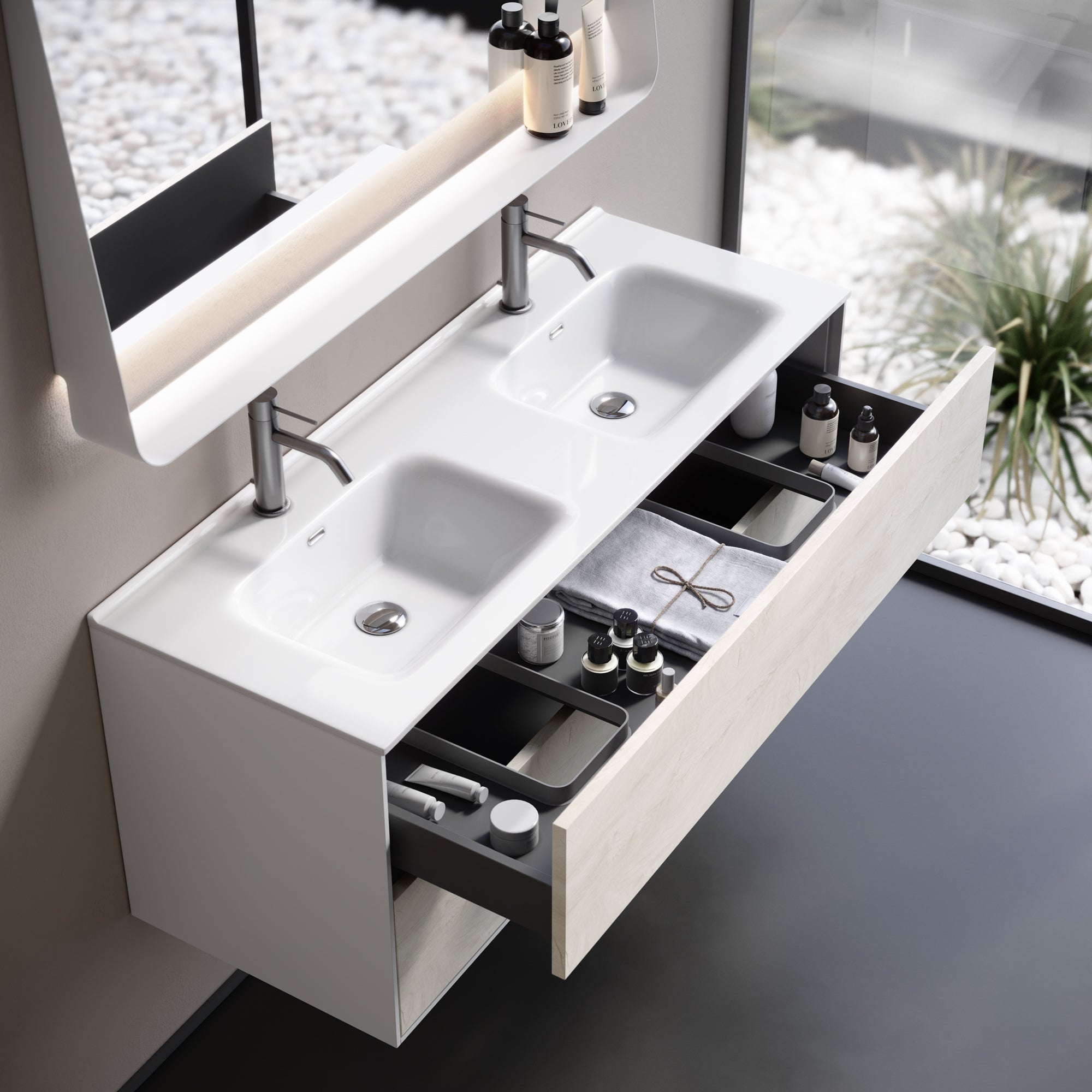 • base sospesa con struttura in melaminico e fianchi slim a vista 9 mm nobilitato bianco opaco