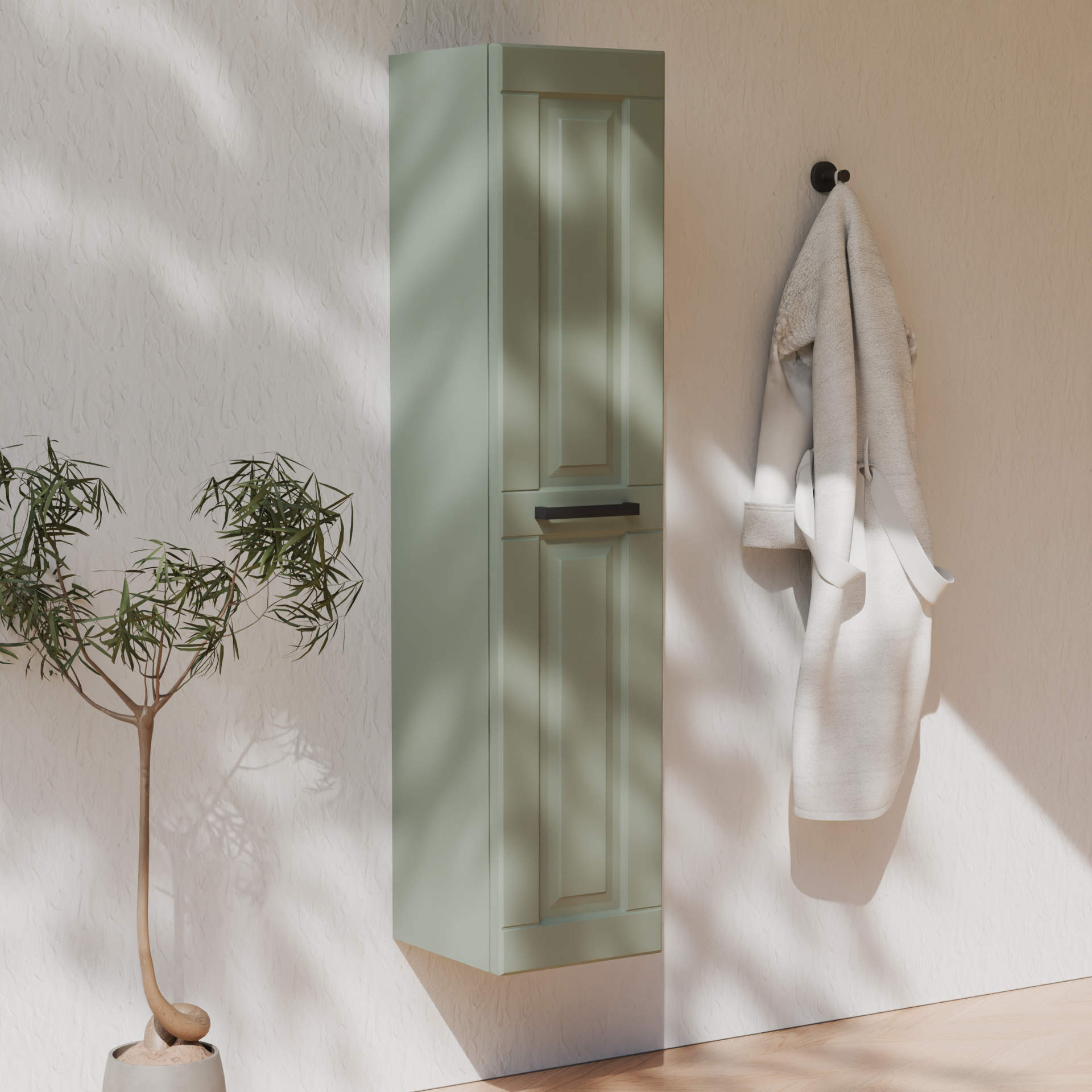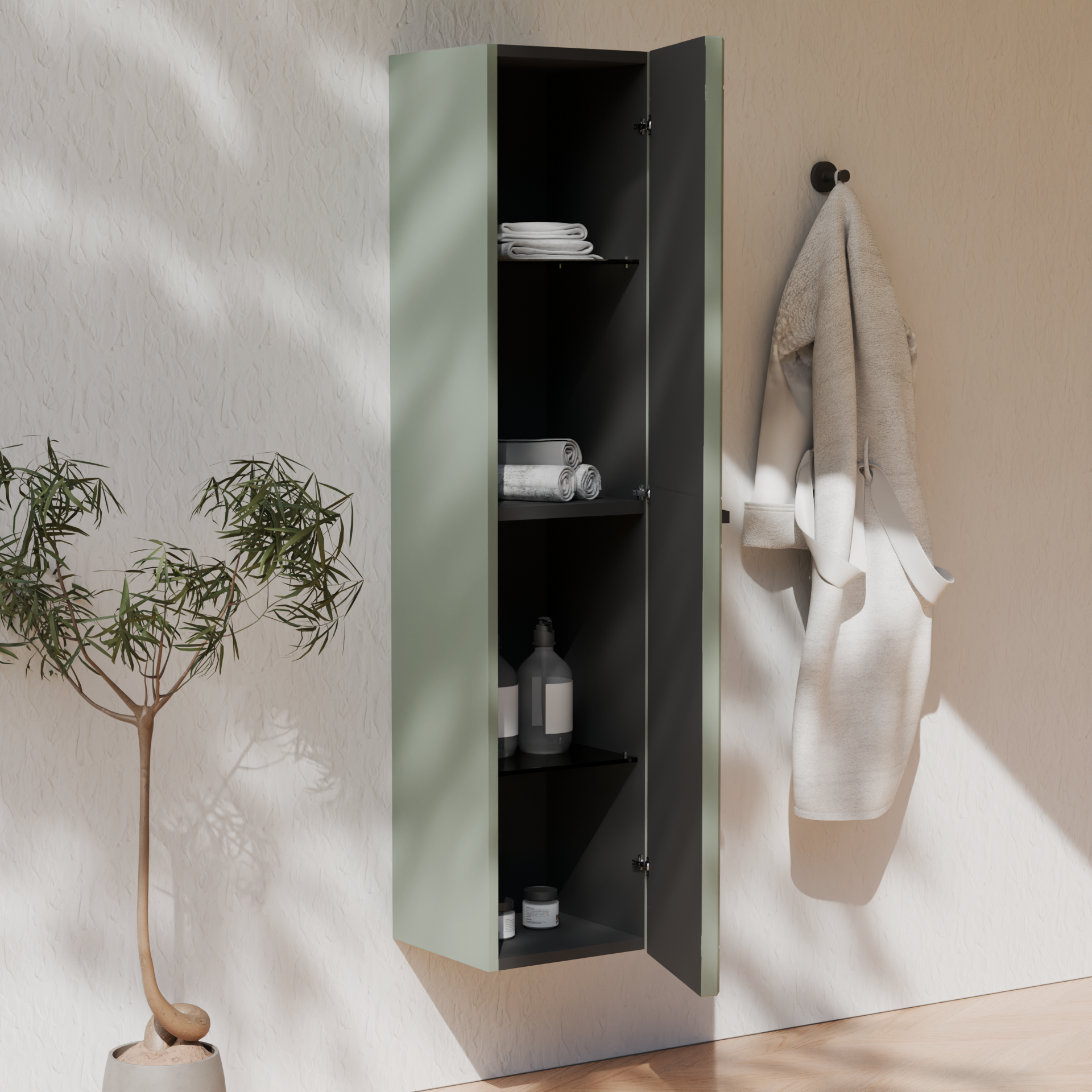 • realizzata in MDF 19 mm rivestito PET, colore verde salvia opaco